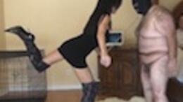 After busting that newbie in the previous clip, I was so frustrated that I actually brought another RELIABLE ballbusting slave out to show this newbie loser how its done. (I actually made the "failure" slave record this part! LOL) You slaves out there think you can handle this? Don't waste my time if you can't!