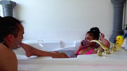 Goddess Venus is taking a bath while sexting one of her boyfriends. She keeps sending it nude pics while the slave worships her feet. Her boyfriend calls her and they talk about all the dirty things they are going to do to each other, all the while ignoring the loser who is licking her feet!
