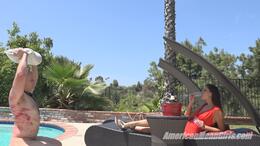 We had no idea before the shoot that Princess Kianna was even coming . But once she showed up, we all knew we had to make this clip. Princess Kianna got to fulfill her lifelong ambition to WHIP A MAN! Princess Chanel was standing by to show her how to do it and Princess C was holding camera documenting it and giving advice as needed. Its so fun and interesting to take a girl who is naturally dominant and bossy and put her in a situation where she can really beat a man into surrender. It goes without saying she is so hot and all men (subby or not) are powerless to resist her charms. Be that as it may you don't find a naked man and a whip available to you that often except at the Mean Girl Manor, LOL! So we gave her a whip and she let it loose. Princess Kianna took to whipping a man like a fish to water, she was a little timid to start but once she got the hang of it you couldn't get her to stop.