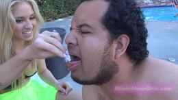 I'm hot and I know it. I have this loser that's so desperate to be around me he'll literally make out with my feet just to be in my presence.He's been telling me for years that he's a foot fetish freak but I figured out that wasn't true at all. Actually, he was such a desperate loser. He just takes literally anything he can get...even if it's my dirty feet. So I decided to humiliate him in this clip. I know he doesn't like feet, so I made him lick mine and admit that the only does it because he sooo obsessed with me. Haha!! LOSER! I even gave my BF a foot job right before this and he came all over these same feet. This loser slave is so desperate for me that it doesn't even phase him. He just continues to make out with my feet and take my verbal abuse!!