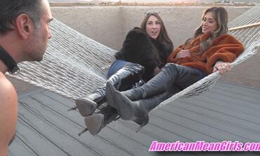 Slave "Dum Dum" worships the feet of Lexi Chase and Princess Skylar as they relax in the hammock at dusk...and if it doesn't do a good enough job the girls laugh about what they will do to it...